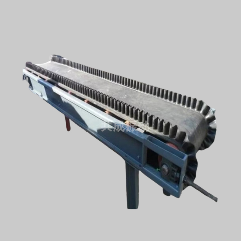 挡边皮带机主要由两个端点的驱动滚筒和改向滚筒及紧套其上的闭合波纹状输送带组成。物料由喂料端喂入,落在转动的输送带上,依靠输送带的摩擦来带动运送袋,并在卸料端卸出。变角容易,占地面积少、能耗省、噪音低。运转方便,输送量大,传输效率高。