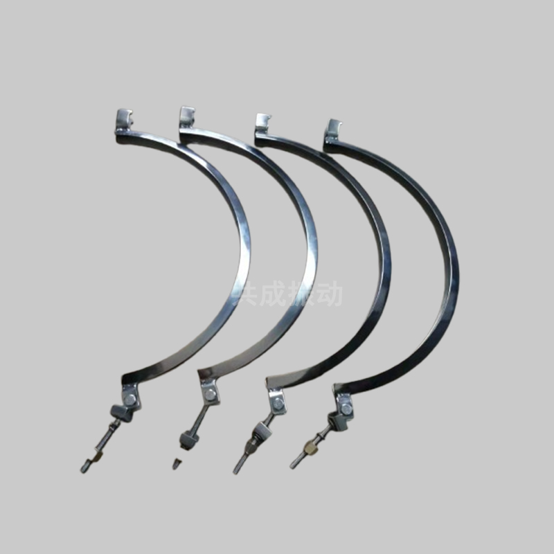 旋振筛紧缩带是旋振筛不可缺少的部分,主要起锁紧振子盘、筛框孔冲板、网架和筛网的作用,它直接影响筛机的使用性能,在设计和制作的过程中必须严格控制配合尺寸及加工精度,对其材料的选取也相当重要,其材质主要有不锈钢和普通碳钢。此外我公司还可以根据用户需要进行特殊设计。